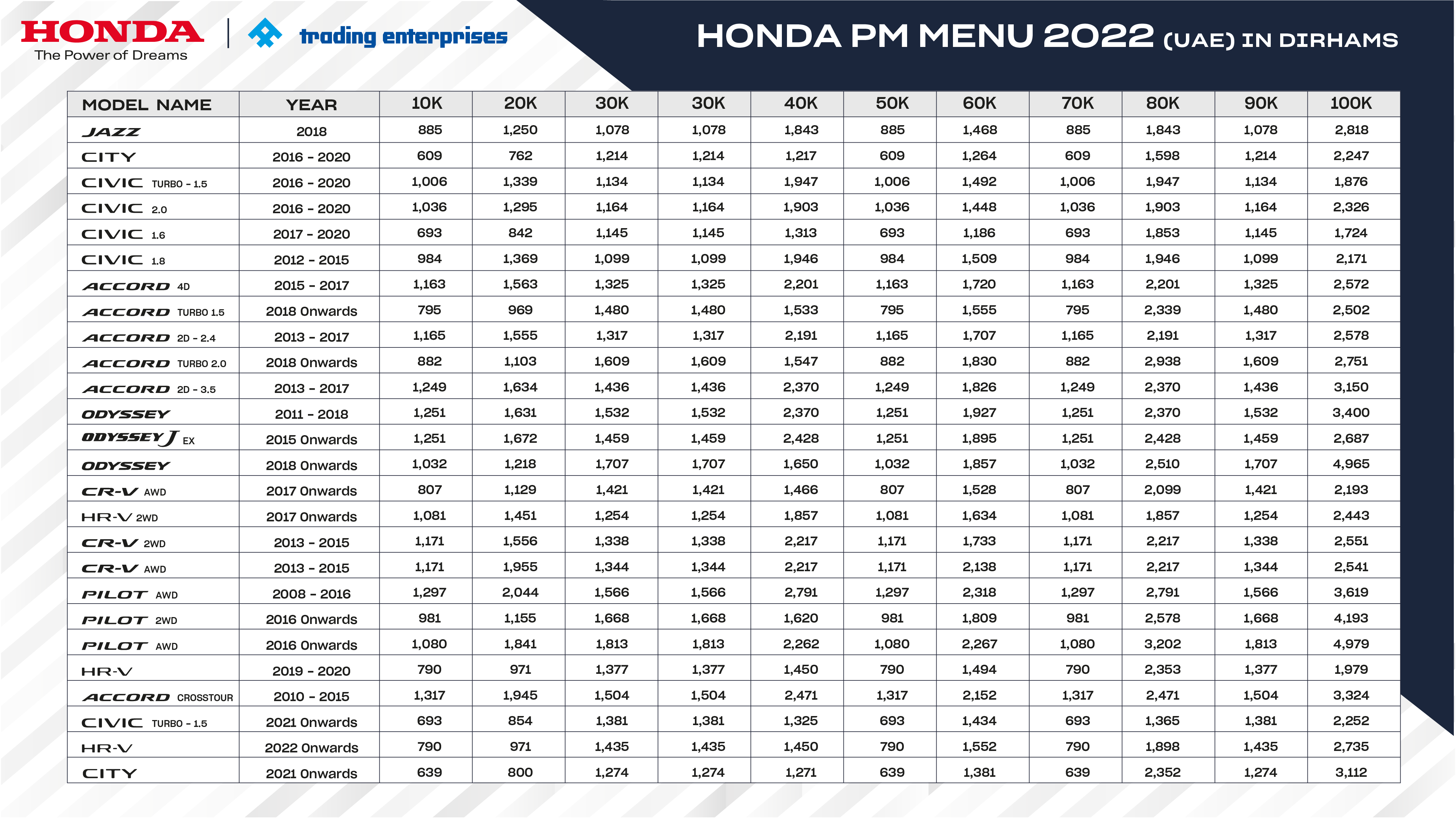 Honda Price List